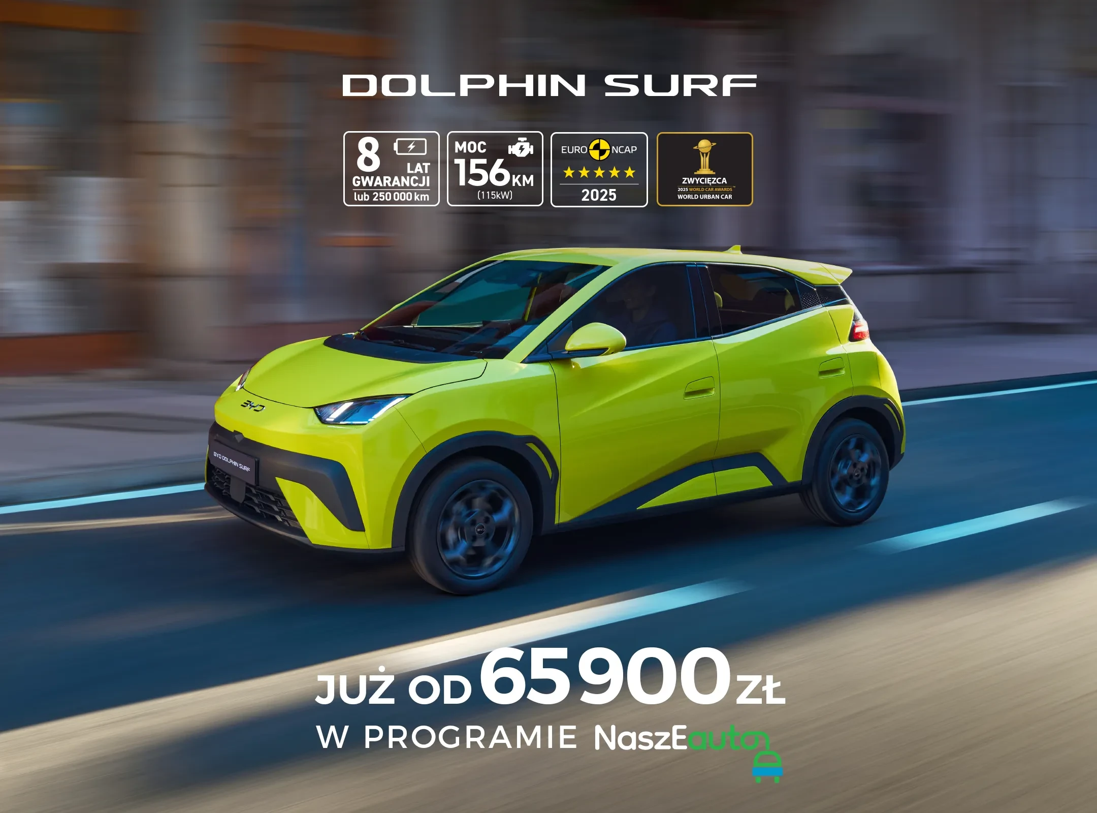 Teraz w 100% elektryczny Dolphin Surf z technologią ag亚洲集团, zasięgiem 500 km i 8-letnią gwarancją na baterię dostępny jest w ofercie wyprzedażowej już od 65 900 zł. Cena uwzględnia dopłatę NaszEauto.